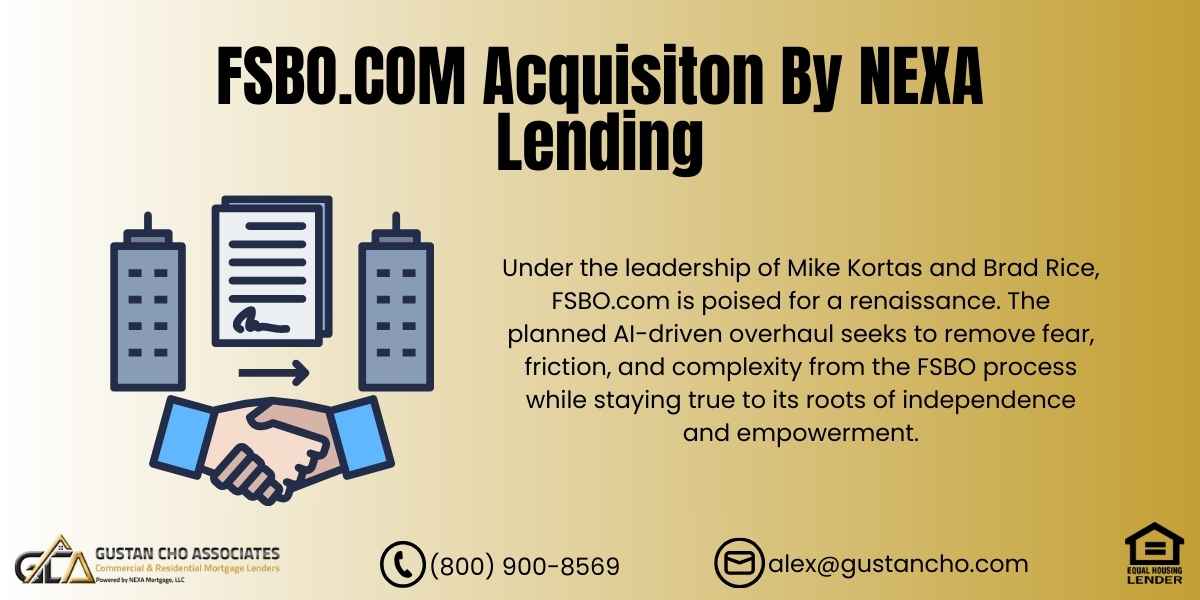 FSBO.com AcquIsition by NEXA CEO Mike Kortas: AI‑Powered Overhaul for Modern FSBO Sellers. The FSBO.com acquisition by NEXA Lending will be a great benefit for Nexa Lending loan officers, team leaders, and branch managers as well as AXEN Realty real estate agents.